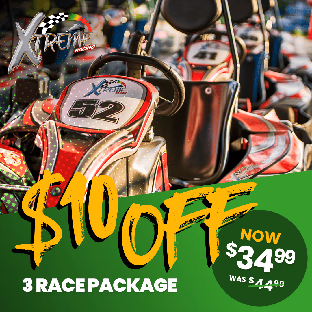 Pricing does not include sales tax. Discounted pricing may not be available on holidays or at any time at the sole discretion of Xtreme Racing Center.